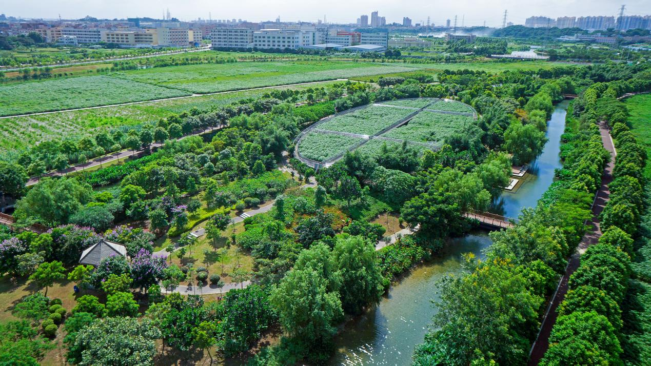生态园片区在开发之前,由于地势低洼,水污染严重,曾经长期垃圾成山、污水横流、洪涝频发,生态环境受损严重。2008年,园区实施“以绿为基,以水为源,重建区域水生态环境”的治水策略,重点打造了燕岭湿地工程,将南畲朗污水处理厂每天约10万吨尾水经人工湿地系统处理后回用于下游湿地生态补水、绿化浇灌、道路冲洗、工业回用等方面。人工湿地进水水质为《城镇污水处理厂污染物排放标准》(GB18918-2002)一级A标准的污水,出水水质为《地表水环境质量标准》(GB3838-2002)Ⅳ类水质,实现了从水污染到水资源的转变。
